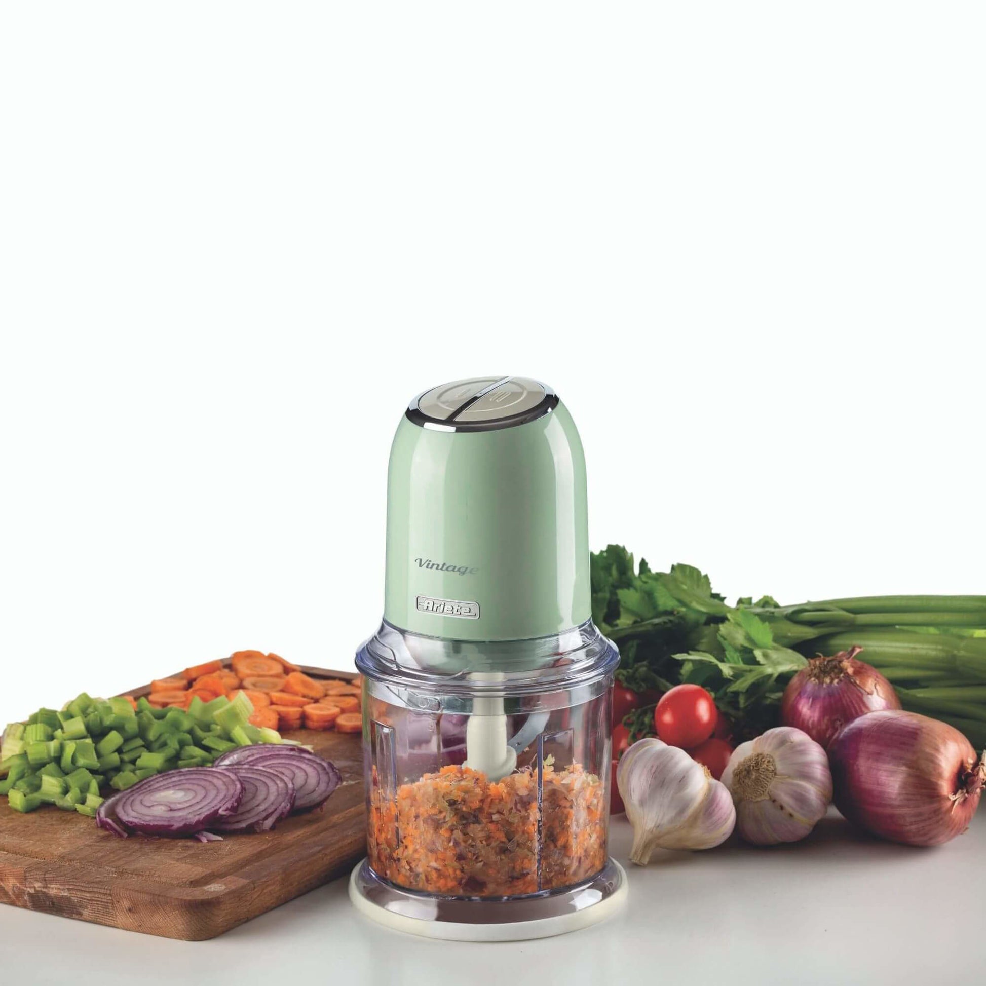 Maak kennis met de Ariete Chopper groen, een compacte keukenhulp die jouw kookervaring versoepelt. Met zijn krachtige motor en scherpe messen hak je snel groenten, kruiden en noten fijn. Het frisse groen ontwerp geeft elke keuken een stijlvolle touch, terwijl functionaliteit centraal staat.