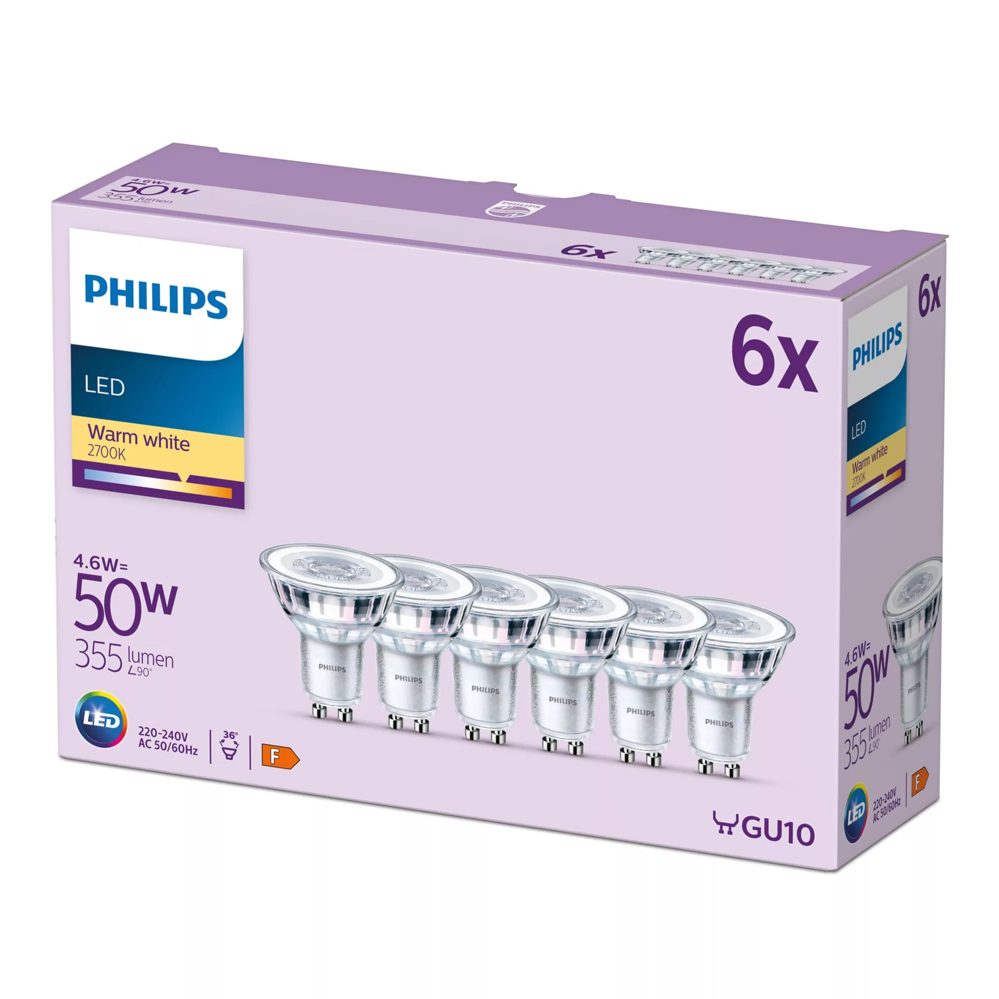 - Set van 6 LED GU10-reflektorlampen van Philips